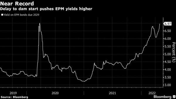 Bonds from the electric utility in Medellin, Colombia, have tumbled toward a record low after officials pushed back the start date for a massive new dam that will eventually supply almost a fifth of the country’s power needs.
