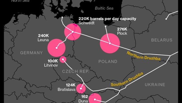 Schwedt supplies 90% of the gasoline, jet fuel, diesel and heating oil consumed in Berlin and Brandenburg, according to the refinery’s website. Leuna is the primary supplier of fuels to the Thuringia, Saxony and Saxony-Anhalt regions — including the cities of Dresden and Leipzig.